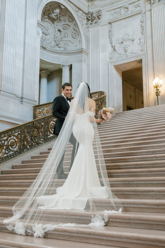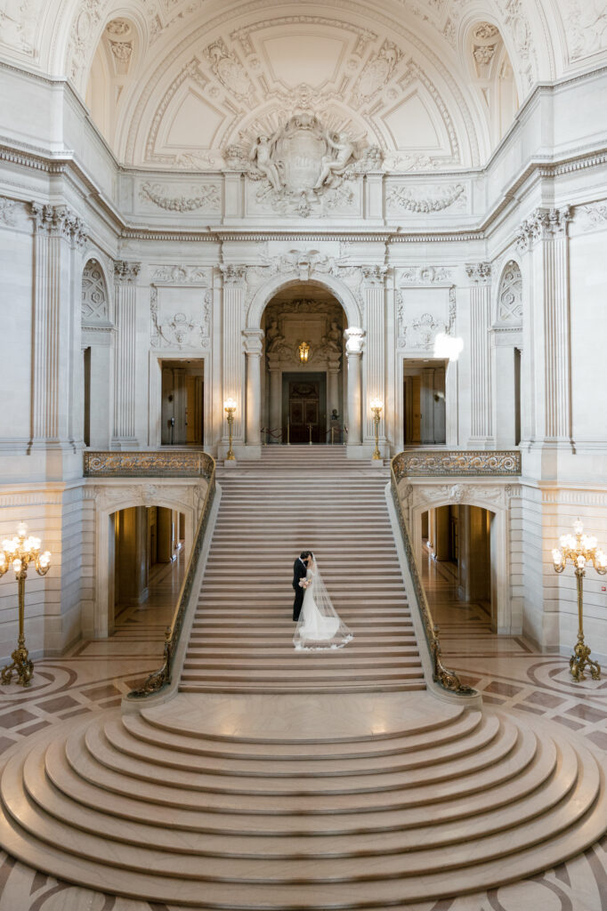 Amy and Emi hosted a private Saturday wedding at San Francisco City Hall. They rented the entire building for their ceremony. City Hall felt grand, intimate, and cinematic all at once.
