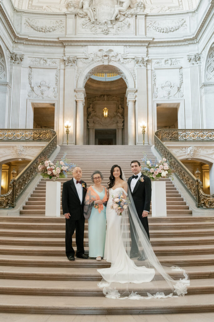 All guests stayed at the Fairmont together. This made the wedding weekend feel seamless and elevated. For couples planning a luxury San Francisco City Hall wedding, the Fairmont is an ideal choice.